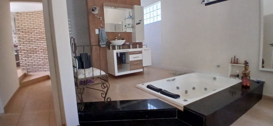 O imóvel possui 3 suítes, sendo 1 suíte independente em anexo, ideal para hóspedes. No interior, conforto é prioridade: ar-condicionado na sala e na suíte principal, banheira de hidromassagem, academia, e uma sauna para momentos de relaxamento.